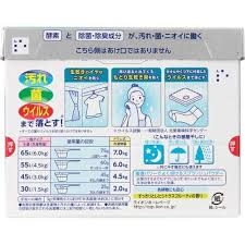 Порошок устраняет самые трудновыводимые и застарелые пищевые и технические пятна и убивает бактерии, делая белье идеально чистым. Антибактериальный компонент содержит в себе ферментный отбеливатель. Благодаря силе ферментов, проникающих глубоко в волокна ткани и расщепляют жирные белковые загрязнения, растворяя желтизну. рекомендуется также совместное использование с отбеливателем кислородного типа. Порошок подходитдля сушки белья в комнате, так как не возникает запаха полусохого (затхлого) белья. Белье прекрасно сохнет ночью, в дождливую погоду и в снежный день. Обладает ароматом трав. Предназначен для хлопчатобумажных, льняных и синтетических тканей. Подходит для все типов стиральных машин и для ручной стирки.